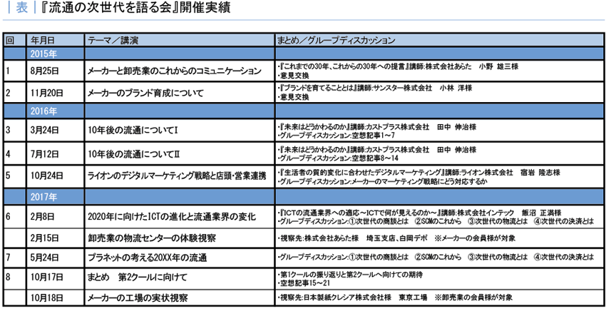 以上で『流通の次世代を語る会』のご報告としたい。