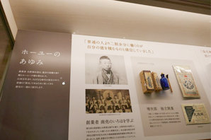 ミュージアムは4つのエリアで構成されており、3階の「ホーユー展示室」では、100年以上の歴史を持つホーユー株式会社のあゆみを紹介しています。創業者の「売るからにはいいものを、まずは安全が第一だ」という信念は、同社の研究開発の基盤となっています。ヘアカラー製品の安全性向上という課題から独自のたんぱく質解析技術(プロテオミクス)を開発。この技術は製品の改良にとどまらず、食物アレルギーなどの原因解明にも応用され、社会貢献にもつながっています。