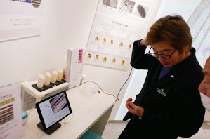 AIシミュレーターを使ったヘアカラー・スタイルのバーチャル体験(写真右上) や、約500倍のスコープを髪の表面にあてることでキューティクルの状態がわかる毛髪診断(写真右下)など 、さまざまな体験ができます。